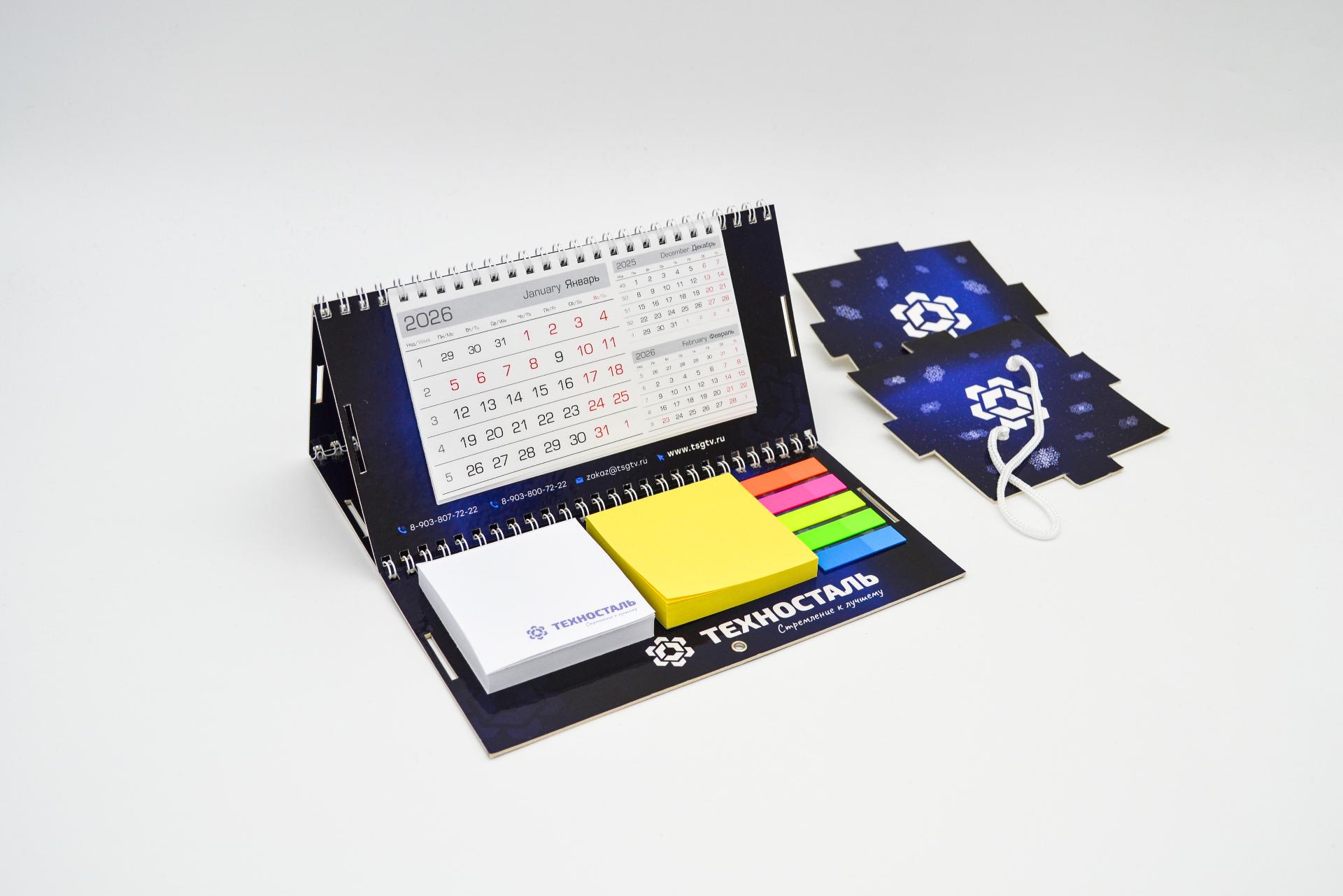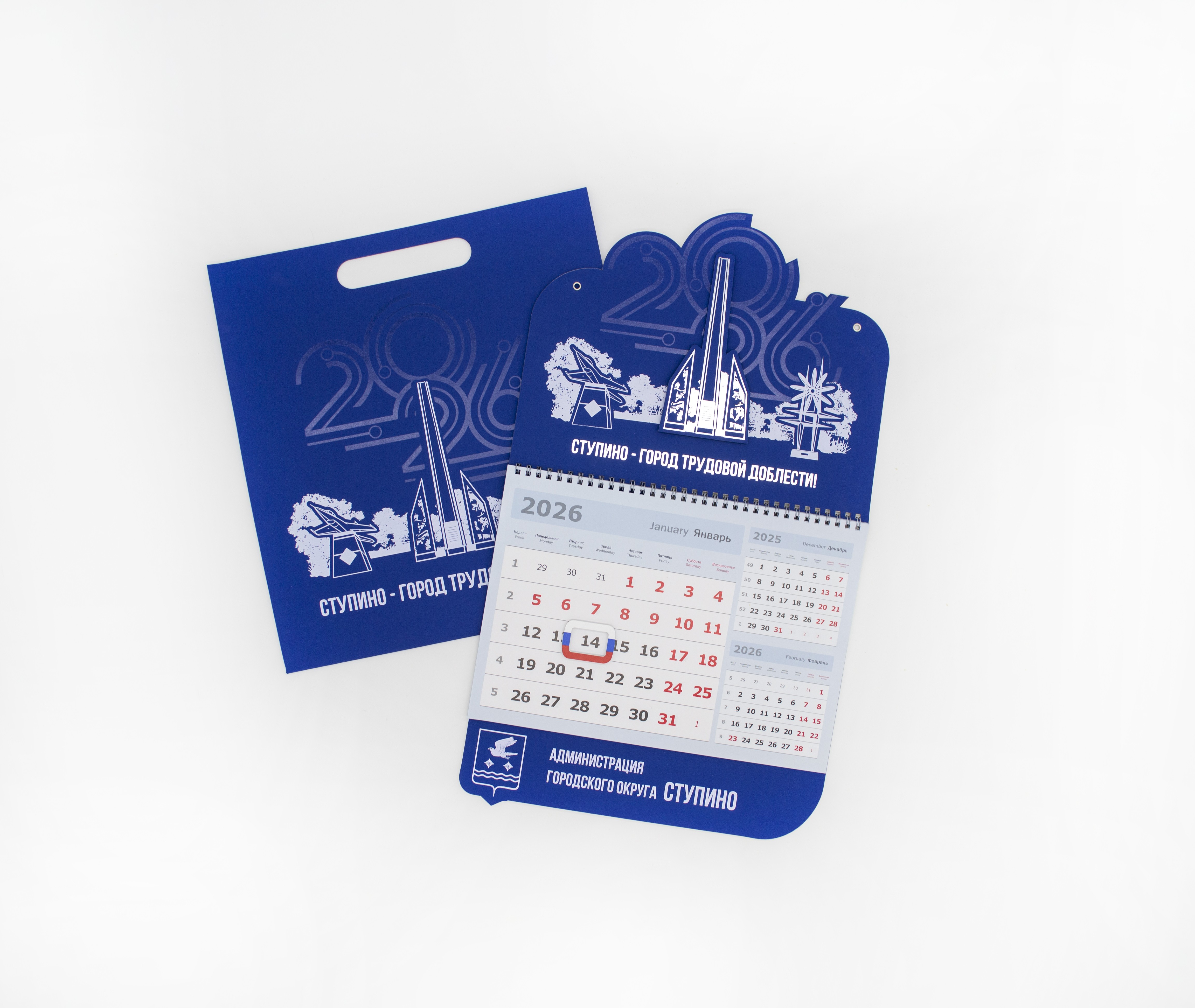 Календарь в виде шестерёнки для инженера, в форме кофейного зерна для бариста или фигурный логотип в центре постера. Элемент, который вместе с другими создаёт объемную композицию и отражает суть организации. Это арт-объект, с которым приятно взаимодействовать.