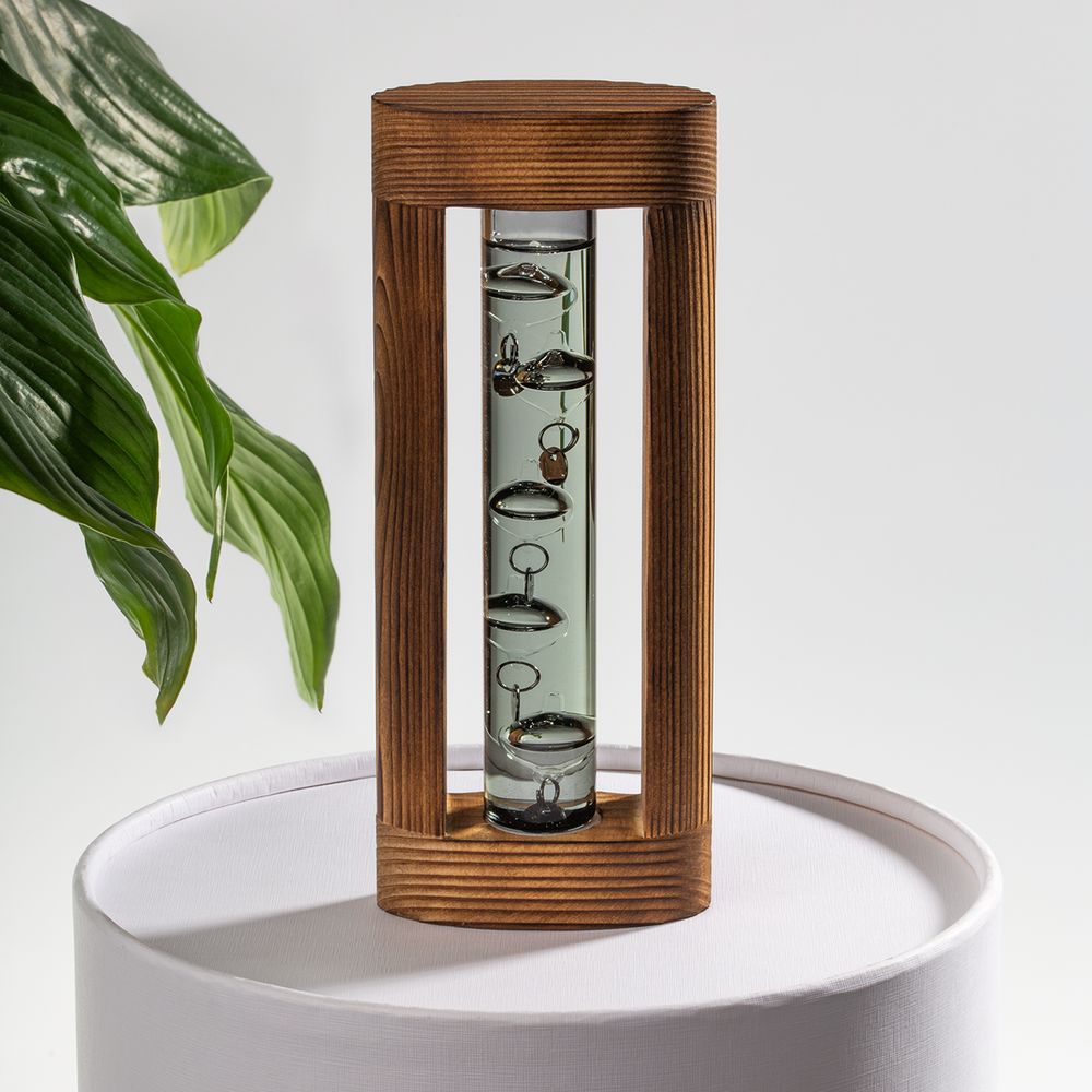 Любопытный термометр, изобретенный великим Галилео Галилеем, который первым обнаружил, что плотность жидкости увеличивается при снижении температуры и уменьшается при ее повышении.