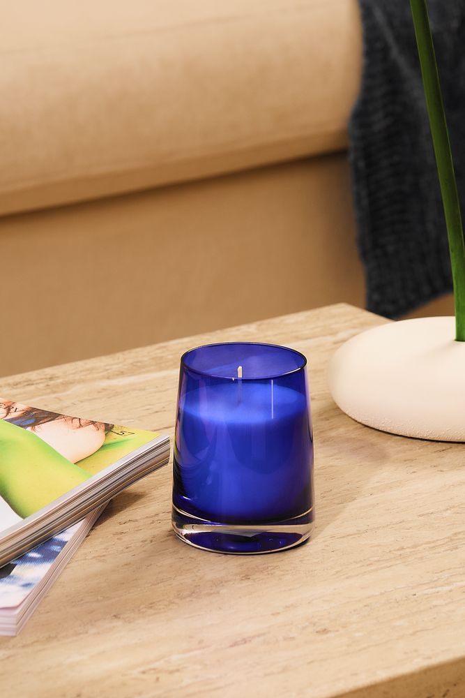 Ароматическая свеча Fragnola в изящном подсвечнике из цветного стекла идеально подходит для создания уютной атмосферы в доме и станет отличным дополнением к любому интерьеру.