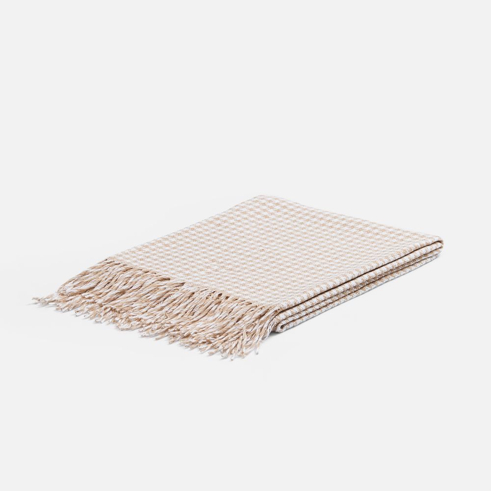 Графичный узор «гусиная лапка» (или «pied-de-poule») превращает изделие в изысканный интерьерный акцент, а бахрома добавляет ему элегантности и завершенности. Это воплощение безупречного вкуса и дань вневременной классике.