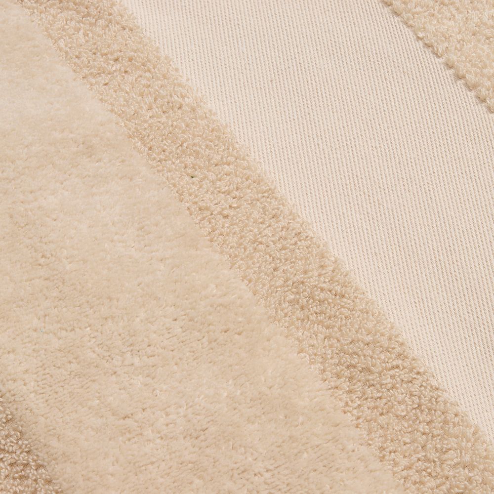 Пышная рельефная структура создает эффект роскошного спа-ухода и быстро впитывает влагу благодаря расположенным пучками петлям, а изящная полоса  из стриженных петель с эффектом велюра добавляет элегантности. Практичный гладкий бордюр станет идеальным холстом для нанесения символики и позволит создать уникальный персональный подарок.