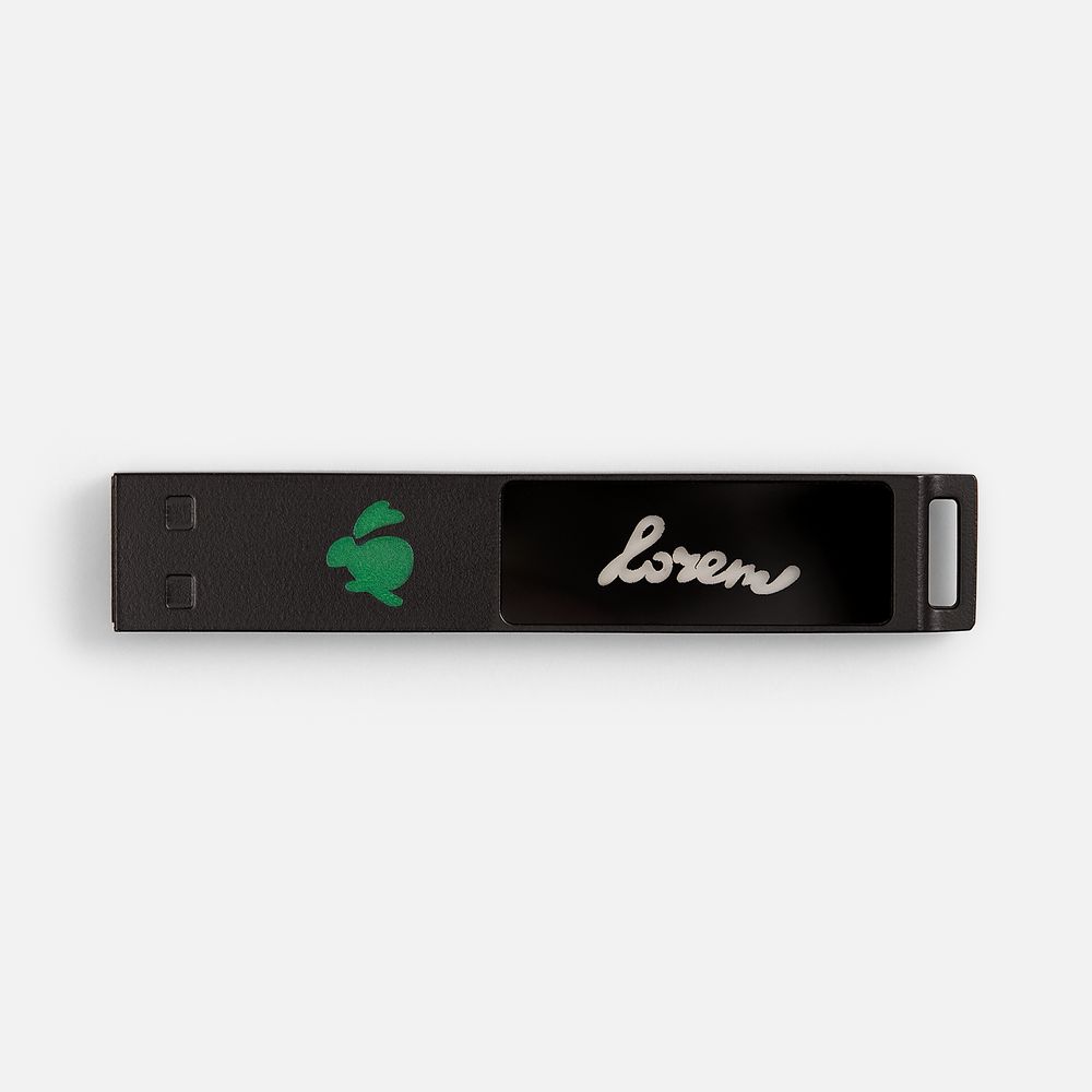 Флешка в тонком металлическом корпусе с пластиковой самоклеящимся шильдом в комплекте. Благодаря встроенной в корпус светодиодной матрице, логотип, выполненный на шильде методом лазерной гравировки, подсвечивается белым, красным, зеленым или синим в зависимости от выбранной модели.