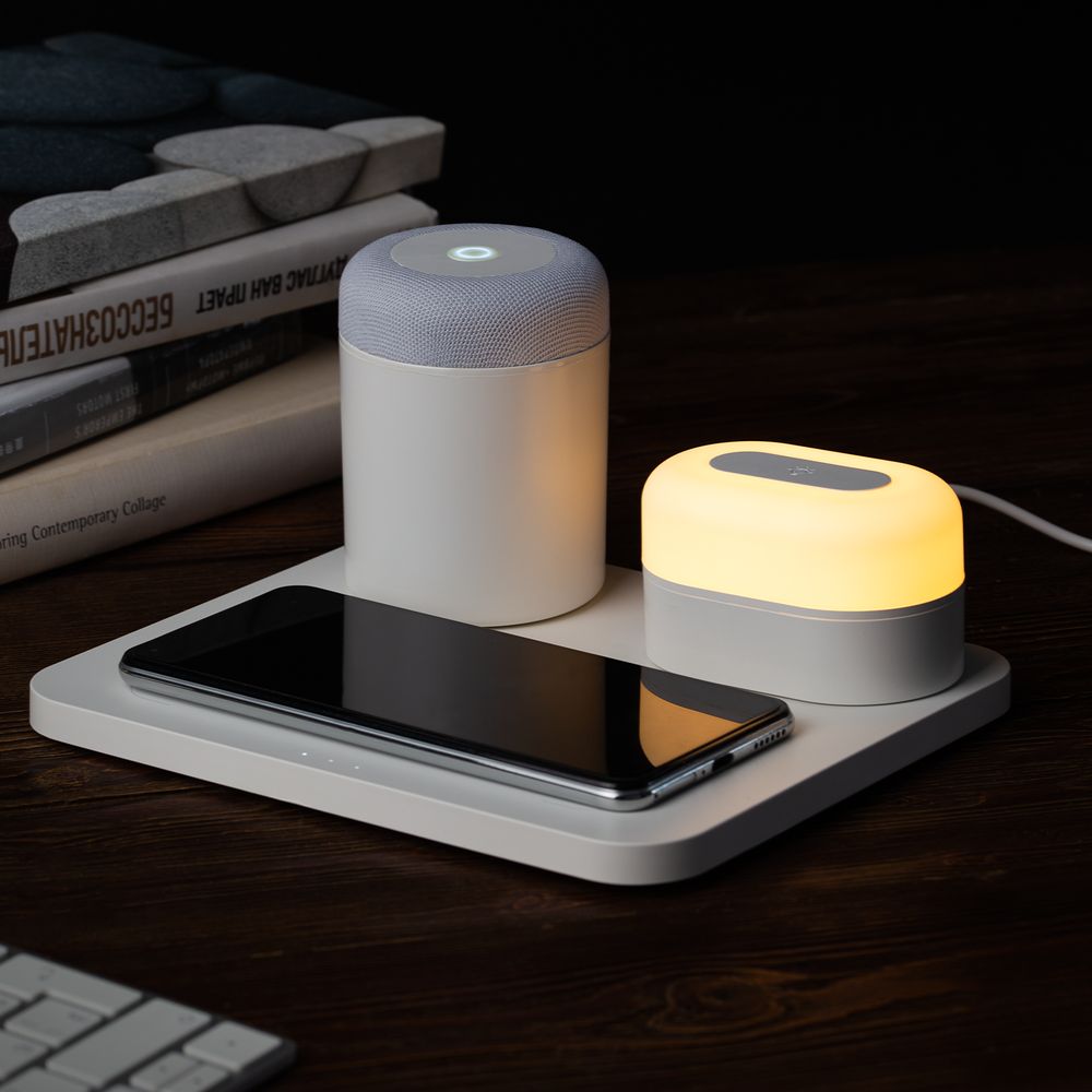 Trilogy — многофункциональное устройство, три составляющих которого эффектно дополняют друг друга: это bluetooth-колонка, переносная лампа и площадка для беспроводной зарядки гаджетов.
