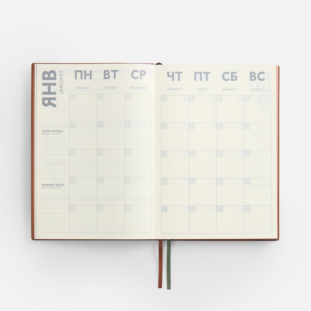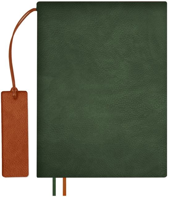 Ежедневник с гибкой обложкой и закладкой из искусственной кожи, дополнен капталом и двойным ляссе.