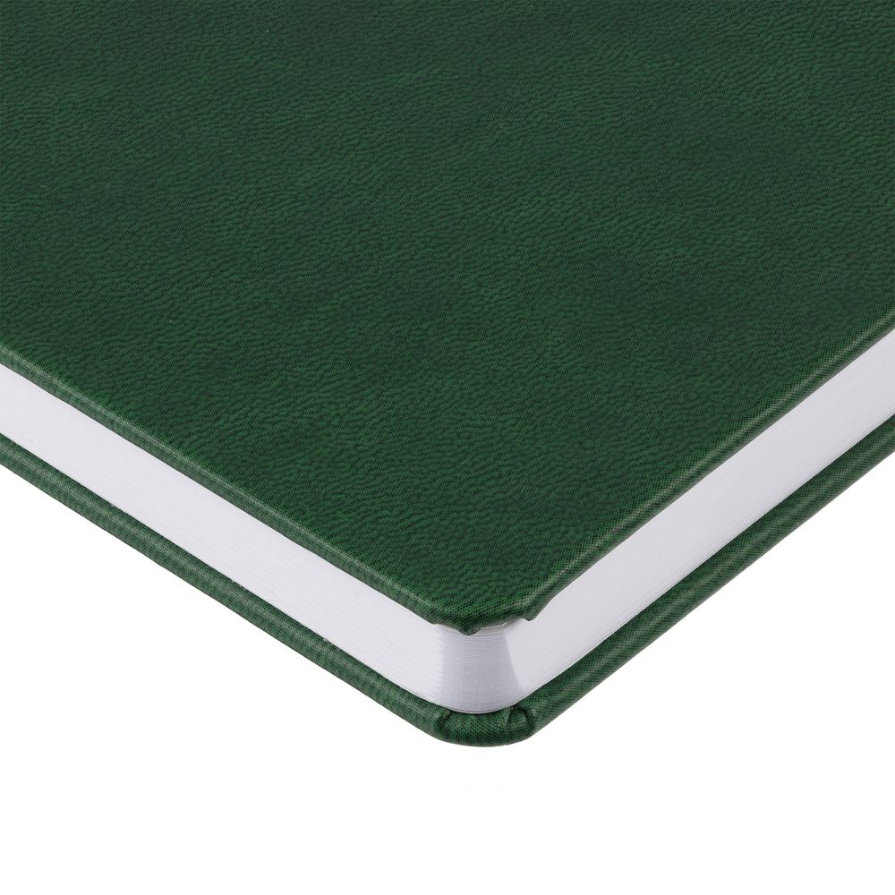 Ежедневник с твердой обложкой, выполнен из материала Latte, зеленый FF, дополнен ляссе в цвет обложки.