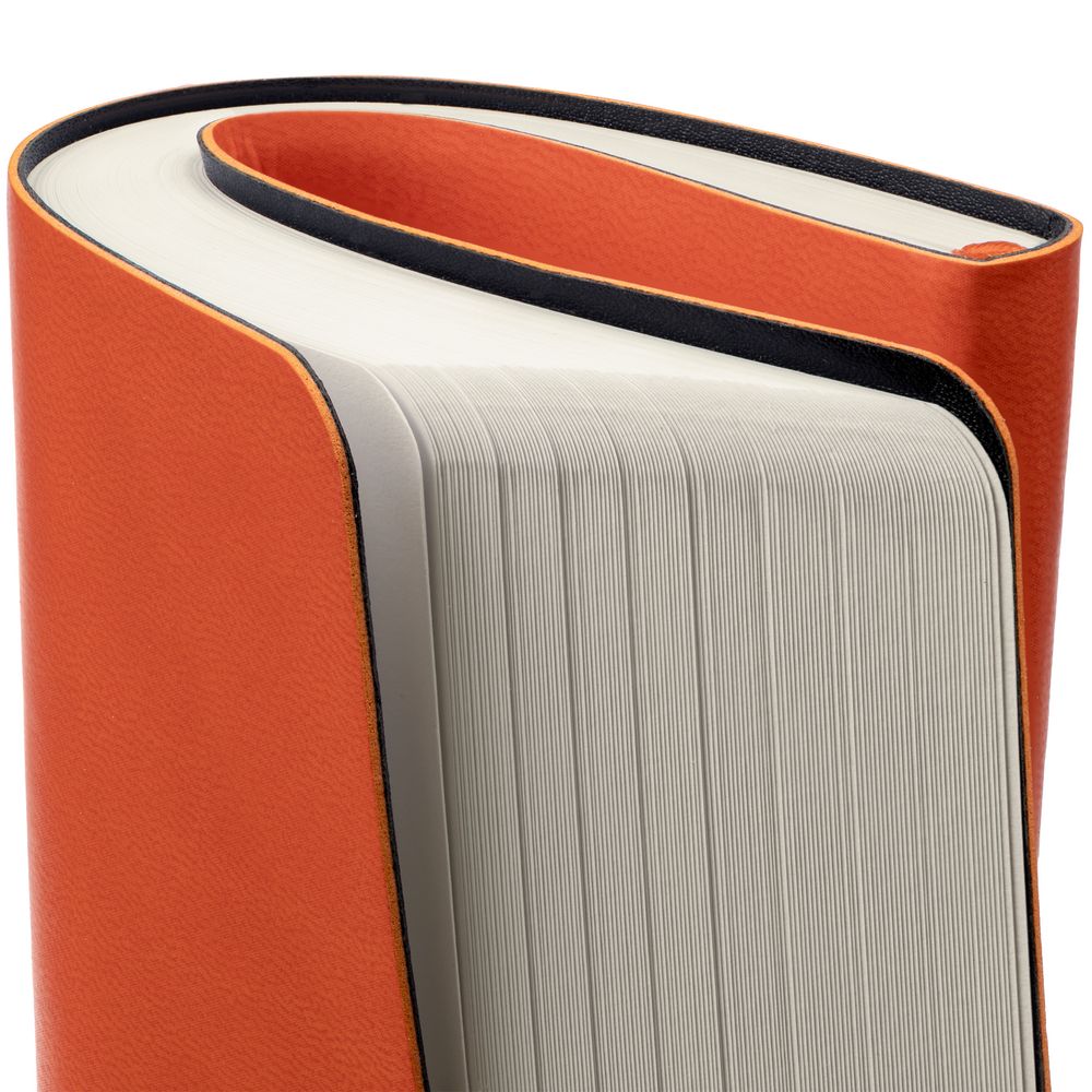 Ежедневник с гибкой обложкой, выполнен из материала Latte, оранжевый, дополнен ляссе в цвет обложки.