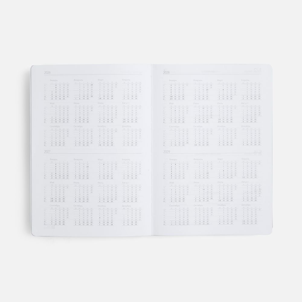 Ежедневник с твердой обложкой выполнен из материала Nice Touch, фиолетовый UU, и дополнен резинкой шириной 1 см и ляссе сиреневого цвета.