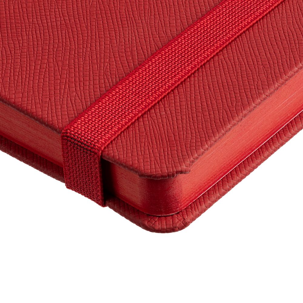 Ежедневник с твердой обложкой выполнен из материала Nice Touch, красный PP, и дополнен резинкой шириной 1 см и ляссе красного цвета.