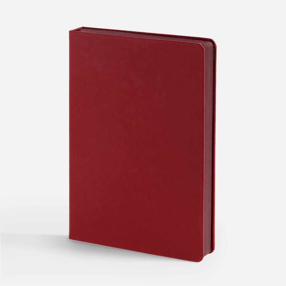Ежедневник с твердой обложкой и тонированным обрезом, выполнен из материала Soft Touch, красный РР, дополнен ляссе в цвет обложки.