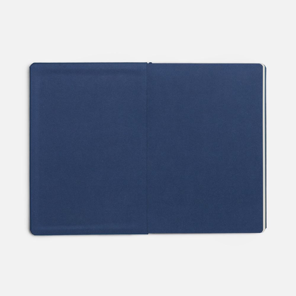 Ежедневник с твердой обложкой и тонированным обрезом, выполнен из материала Soft Touch, синий НН, дополнен ляссе в цвет обложки.