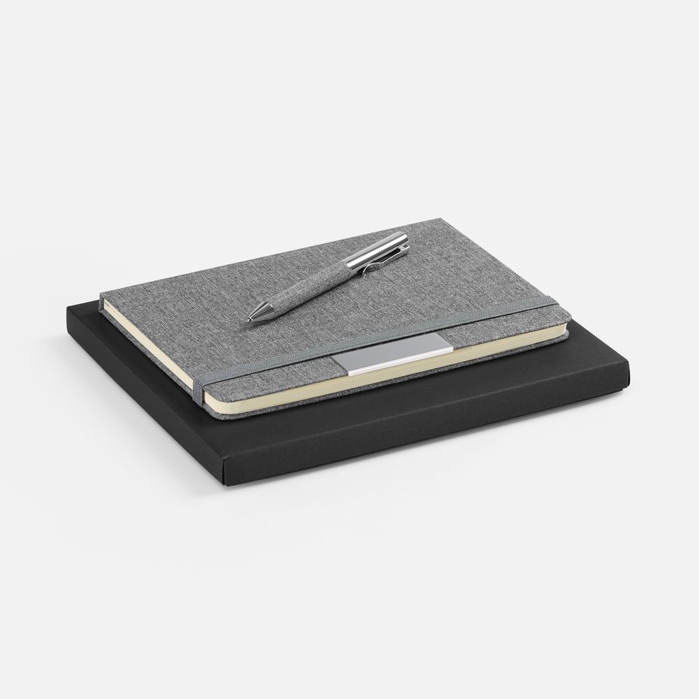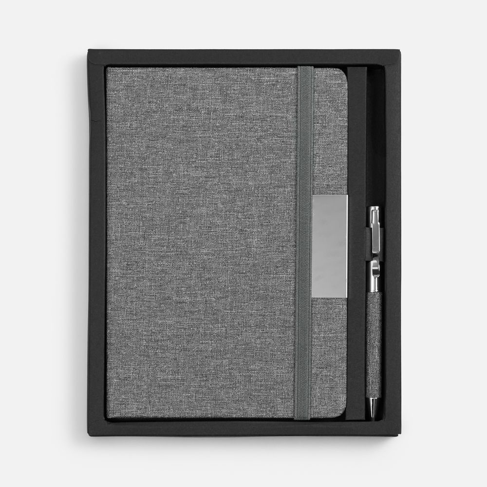 упаковка: 19,3х23,6х1,7 см; блокнот: 21х14,6х1,1 см; ручка: 13х1 см