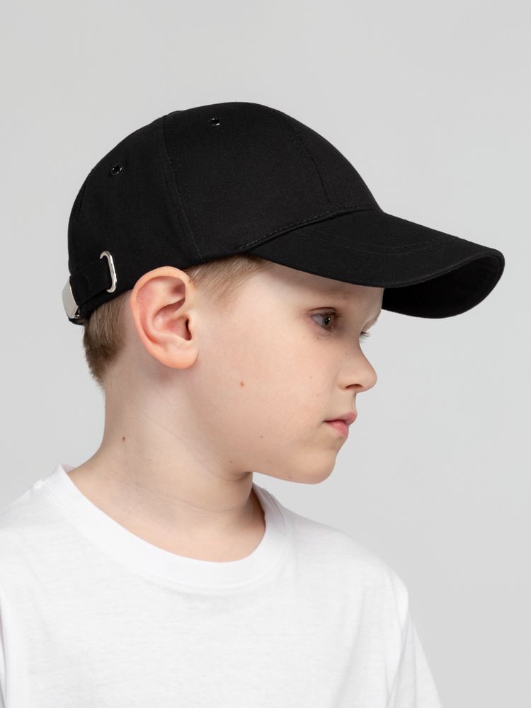 Детская модель с шестью клиньями без шва на лбу. Металлические люверсы покрашены в тон изделия. Сзади металлическая застежка для регулировки размера.