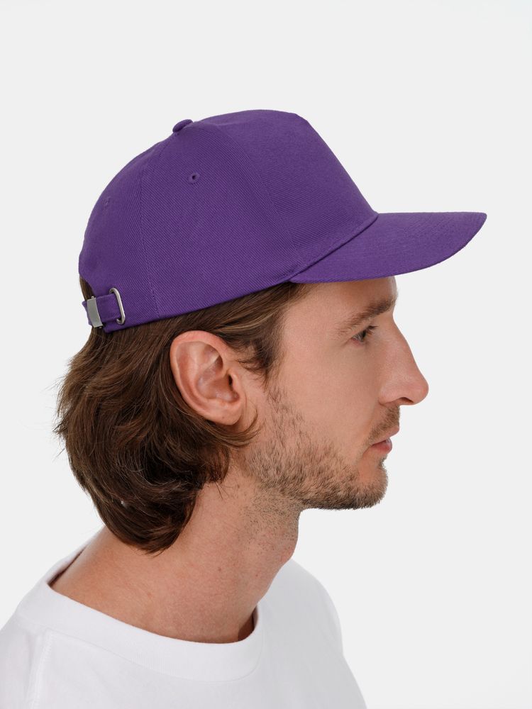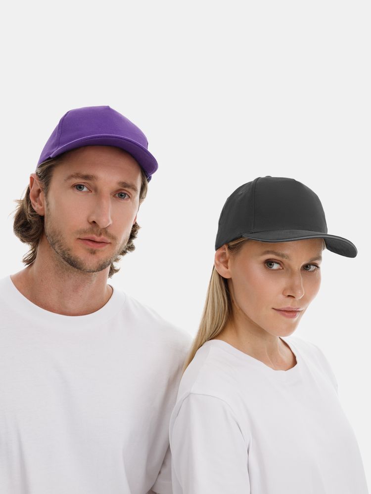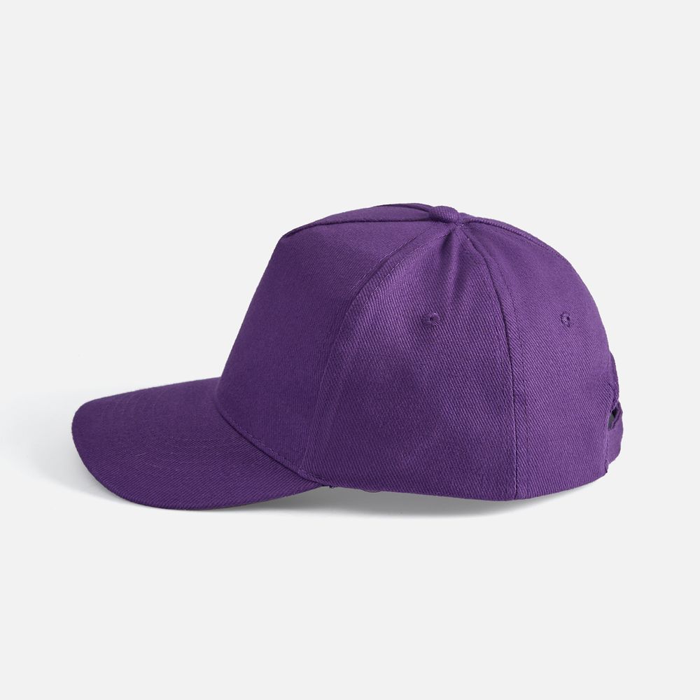 Модель бейсболки с 5-ю клиньями без лобового шва из плотного чесаного хлопка.