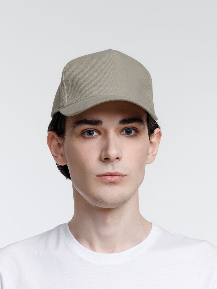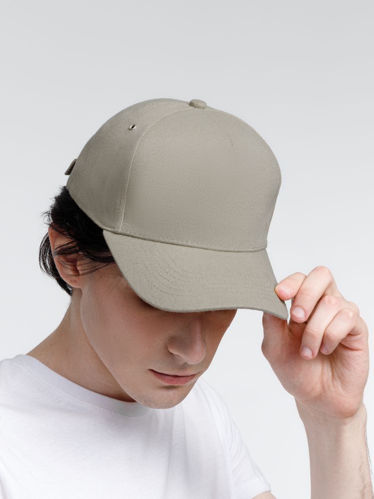 Минималистичная бейсболка с закругленным козырьком и большим местом для нанесения логотипа.