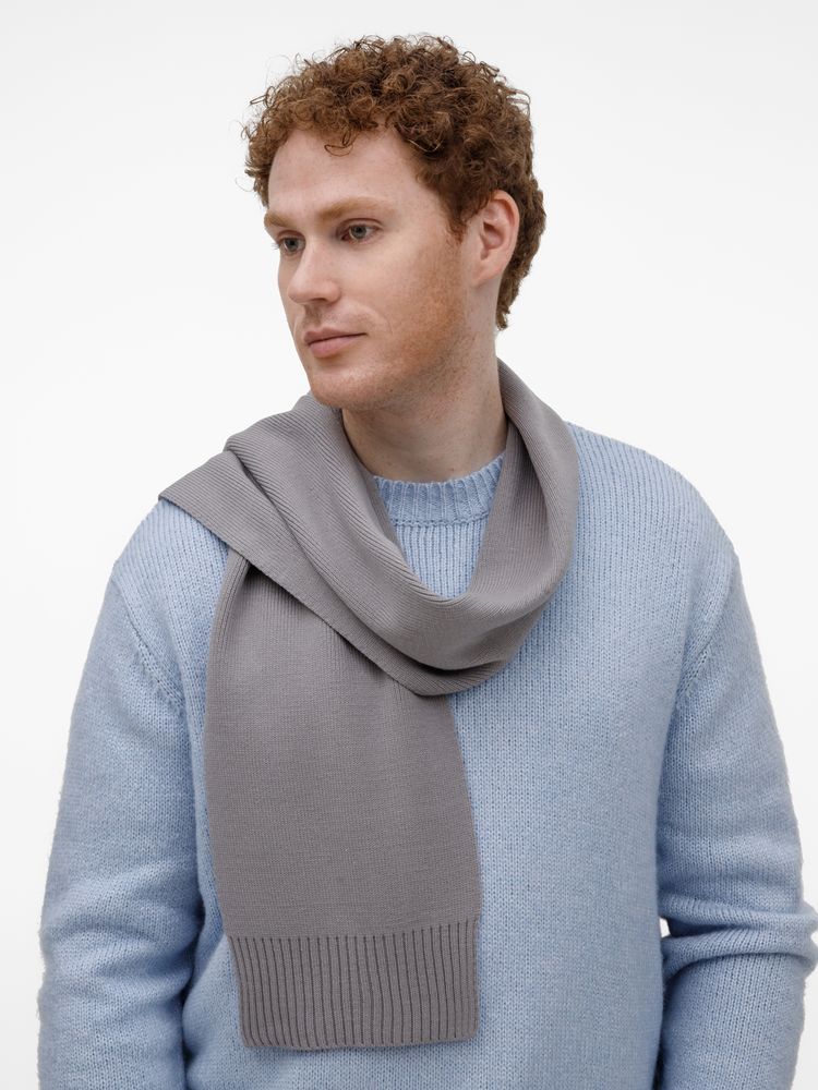 Классический однослойный шарф гладкой вязки. Края, связанные резинкой, придают изделию завершенный и аккуратный вид.