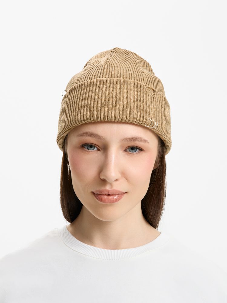 Шапка Ribelle — это практичная двухслойная модель из акрила, которая сочетает в себе уют с трендовым дерзким дизайном. Ее регулируемый отворот с рваным краем и металлическими кольцами в качестве украшений создает выразительный и необычный акцент. Благодаря универсальности и продуманной конструкции она станет стильным и функциональным дополнением гардероба.