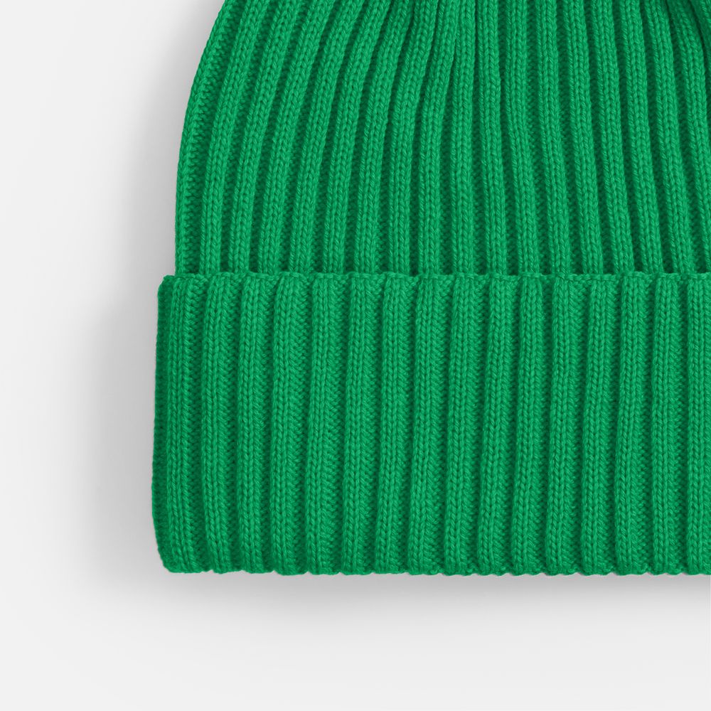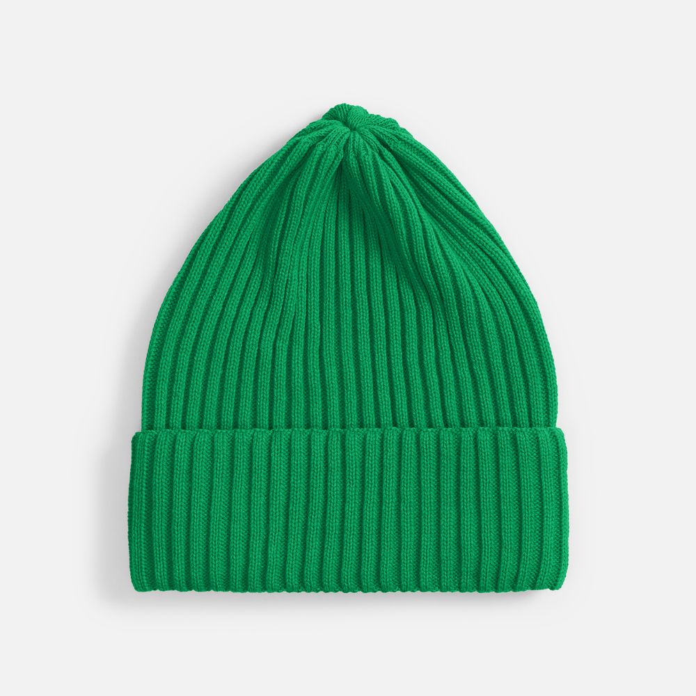 Однослойная шапка фактурной вязки с двойным отворотом.