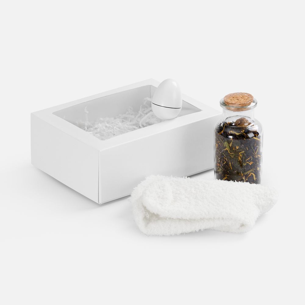 Это базовые элементы заботы — мягкие носки и бальзам для губ — и уникальный сорт чая, задающий особое настроение. Идеальное решение для всех, кто ценит спокойные моменты уединения и эстетику повседневных ритуалов.
