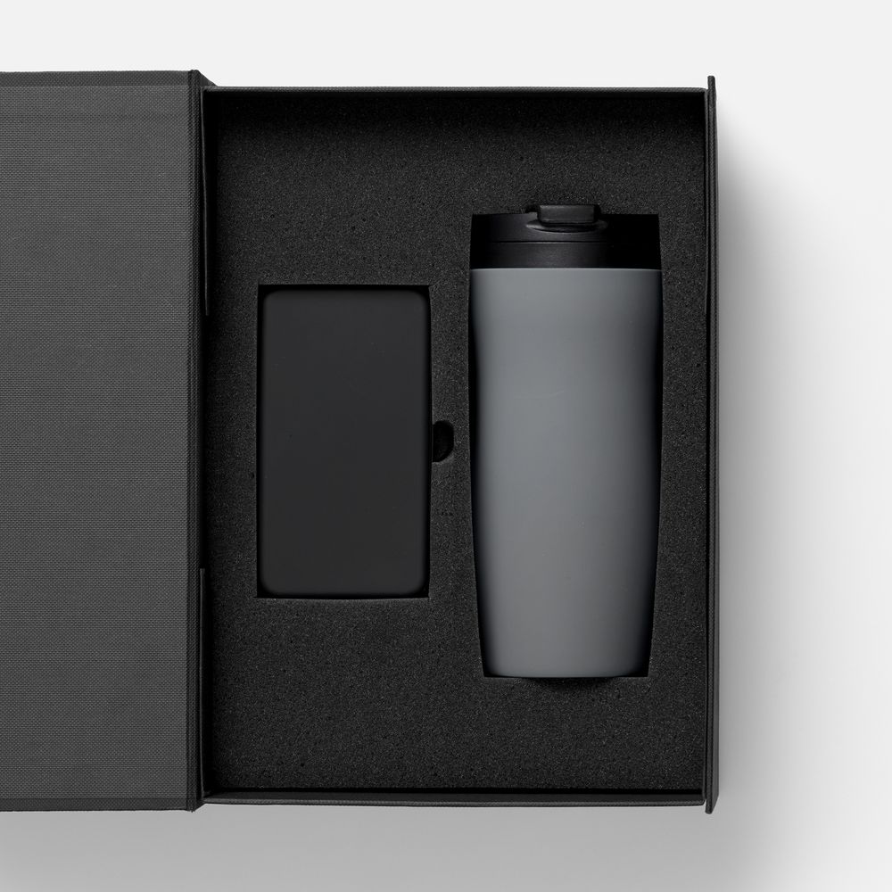 Набор из компактного аккумулятора и термостакана Formisto — практичный комплект для современных и активных людей. Он сочетает в себе функциональность и удобство: гаджет всегда будет на оптимальном уровне зарядки, а любимый напиток — под рукой, чтобы порадовать в любом месте.