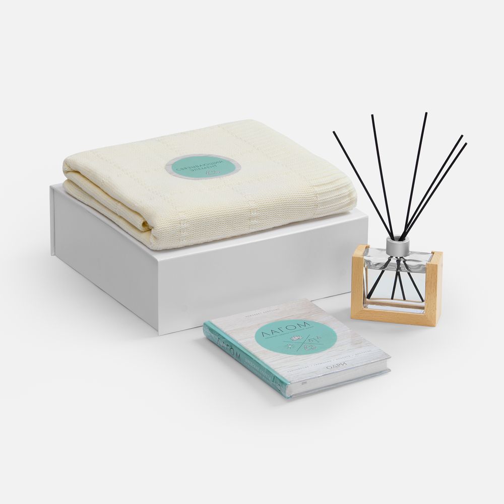 Набор позволяет добавить собственный логотип, сохранив объединяющую предметы идею: все элементы с принтами съемные.Емкость диффузора 120 мл. Ароматической жидкости хватит примерно на 5 месяцев использования.