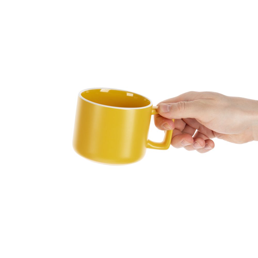 Глазурь спокойных оттенков, матовая снаружи и глянцевая внутри, графичная прямоугольная ручка — с чашкой Fusion не захочется расставаться.