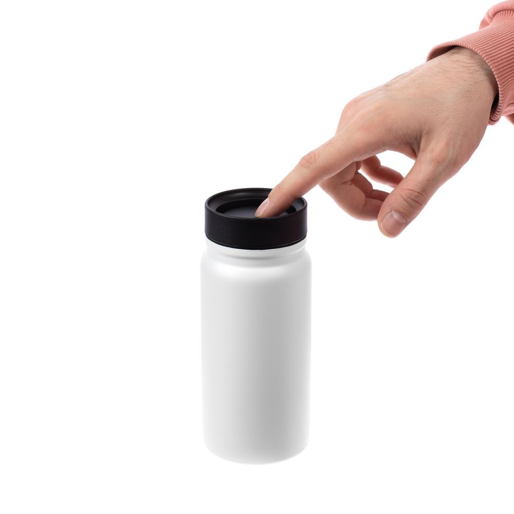 - Герметичная завинчивающаяся крышка с силиконовым уплотнителем и питьевой системой с клапаном — технология 360° позволяет одним нажатием открывать кружку и пить с любой стороны