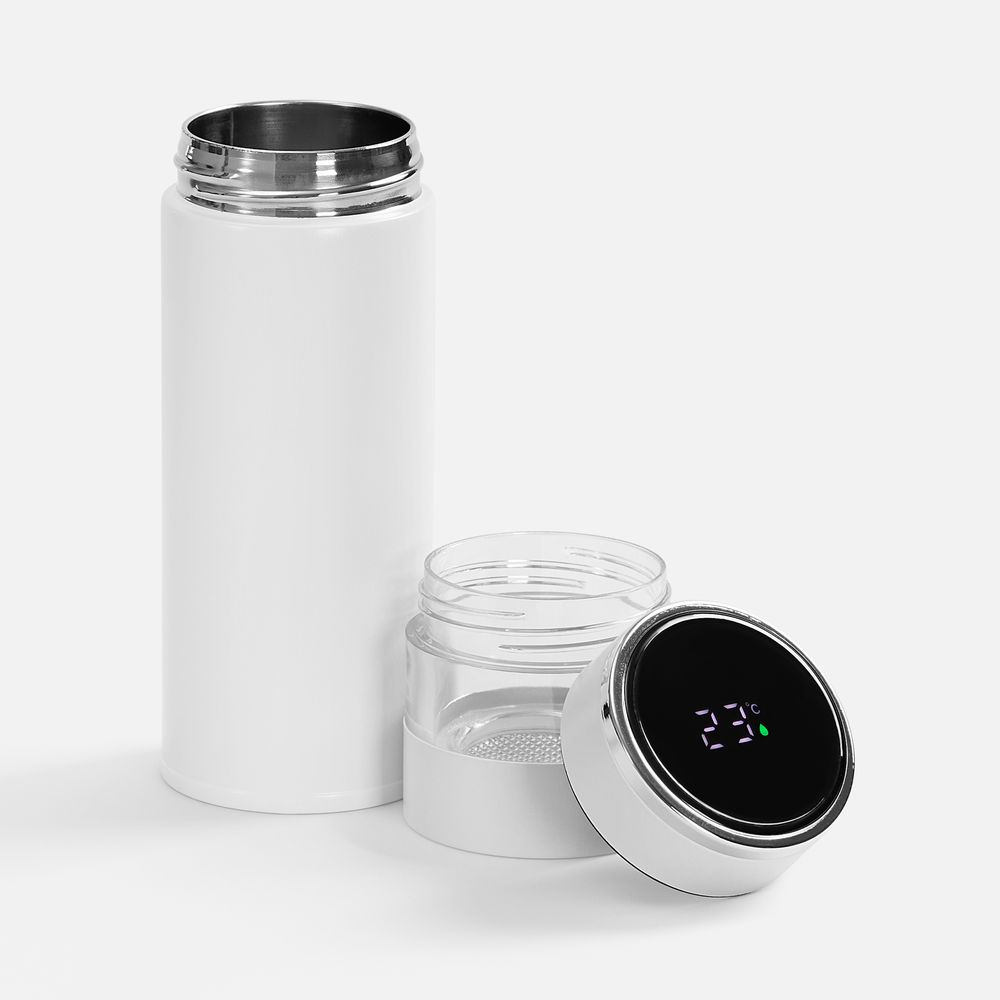 Умная термобутылка для заваривания Thermory отображает температуру жидкости на ЖК-дисплее: точные данные собирает встроенный в крышку датчик. Стенки из нержавеющей стали и вакуумная изоляция корпуса сохраняют напитки горячими (60 °C) в течение 8 часов или прохладными (10 °C) в течение 12 часов.