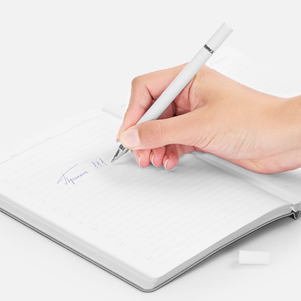Изготовленный из сплава графита со свинцом долговечный наконечник карандаша не требует заточки, а закончившийся стержень в ручке легко заменить. Оба наконечника закрываются защитными колпачками.