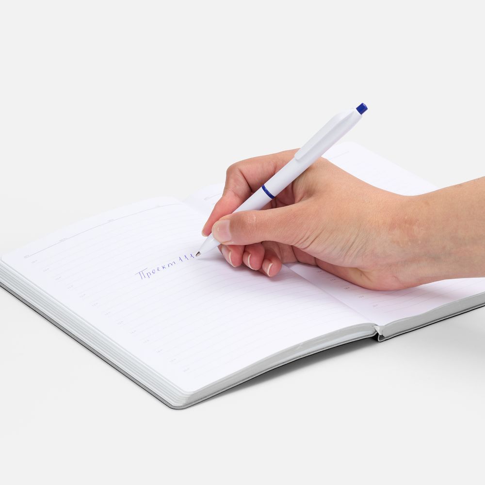 Классическая модель ручки с акцентными деталями: кольцом и кнопкой, которые дополнят логотип компании.