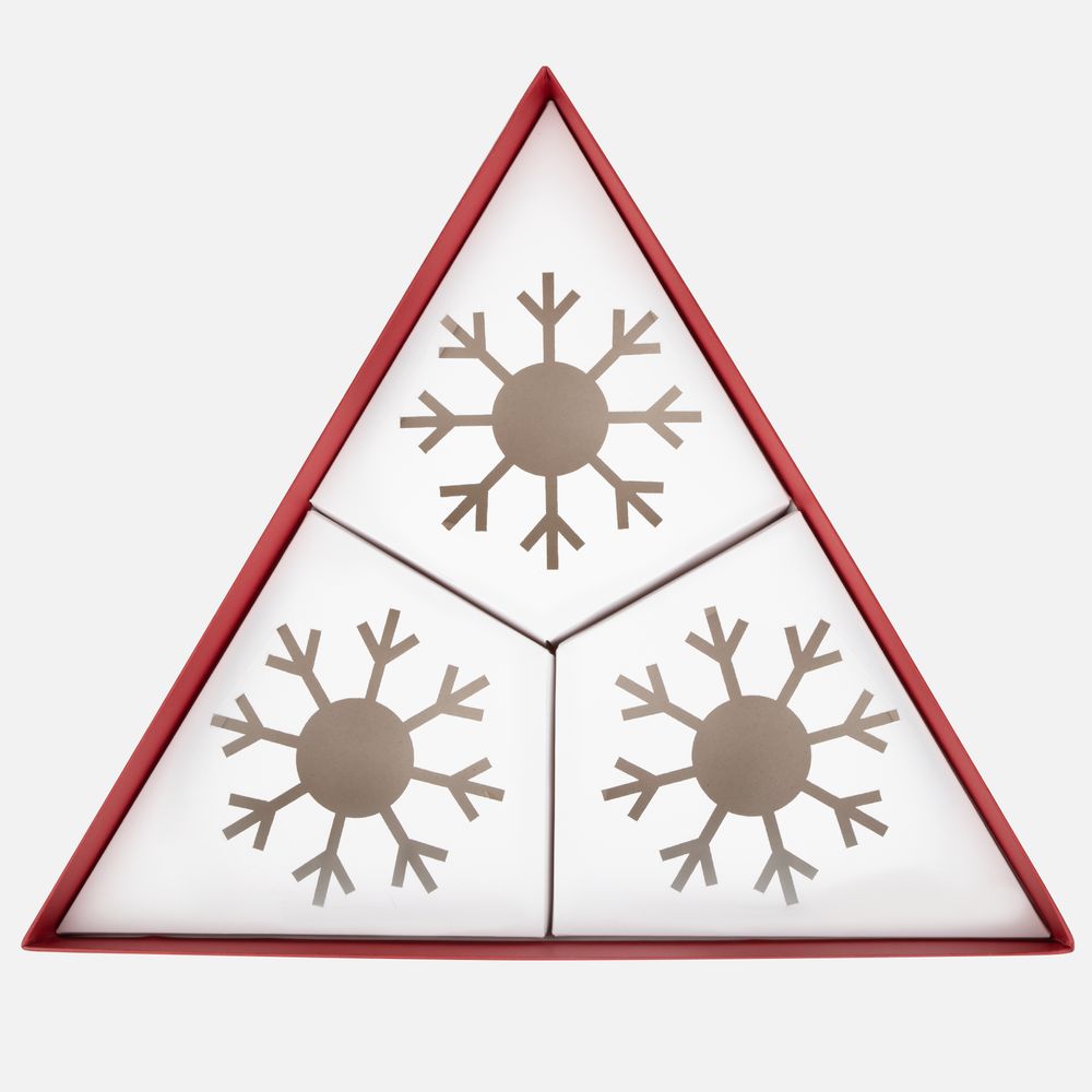 А еще Finery Trio — это маленькое произведение искусства, созданное с вниманием к деталям: шары диаметром 10 см бережно уложены в индивидуальные ложементы с изящным вырезом в форме снежинки, а стильная коробка подарку особую торжественность. Нестандартная треугольная форма упаковки подчеркивает оригинальность композиции и делает презент по‑настоящему запоминающимся.