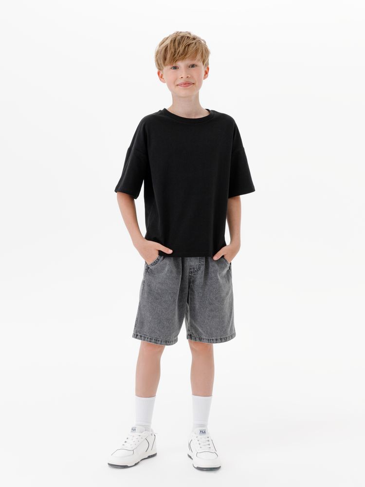 Детская футболка оверсайз из гребенного хлопка с эластаном не стесняет движений и создает модный силуэт.