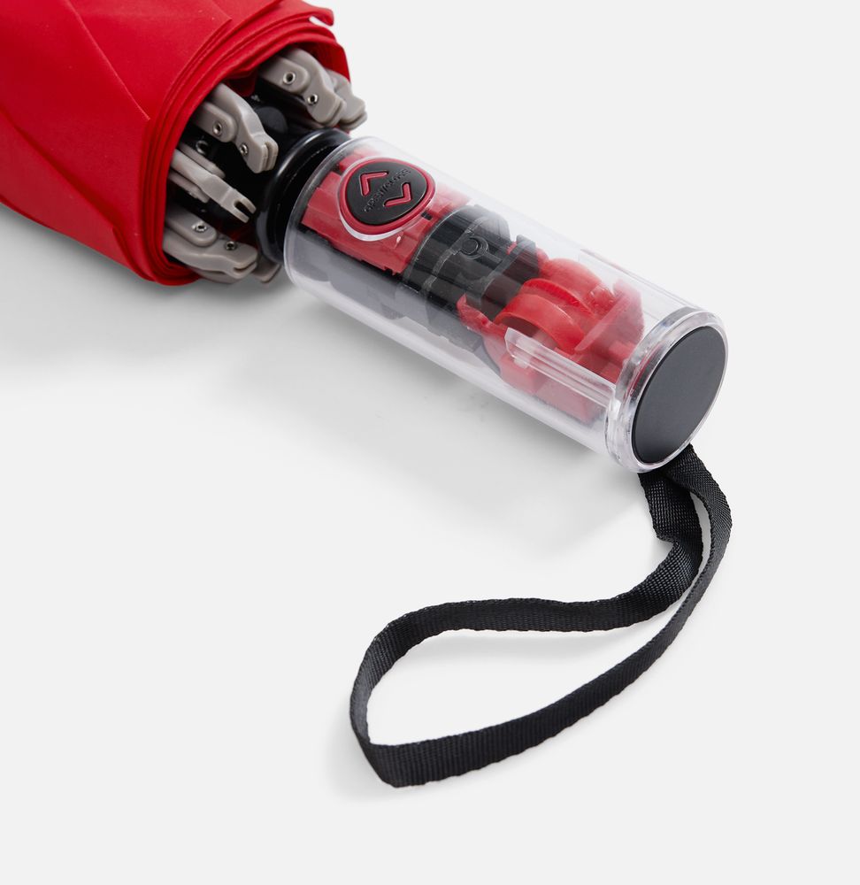 Складной зонт Futurum привлекает внимание оригинальным дизайном. Складываясь после дождя, он прячет мокрую поверхность в себя, а сухая остается снаружи. Светоотражающий кант и ручка из прозрачного пластика, не скрывающая ярких деталей внутри, добавляют внешнему виду зонта футуристичности.