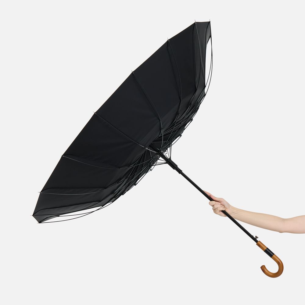 Элегантный зонт-трость Cloudfall с классической деревянной ручкой скрывает под куполом каркас из стеклопластика на 16 спиц для максимальной ветроустойчивости. Его широкий купол создает личное пространство для двоих, а в комплекте поставляется стильный чехол — редкая и ценная деталь для зонтов-тростей.