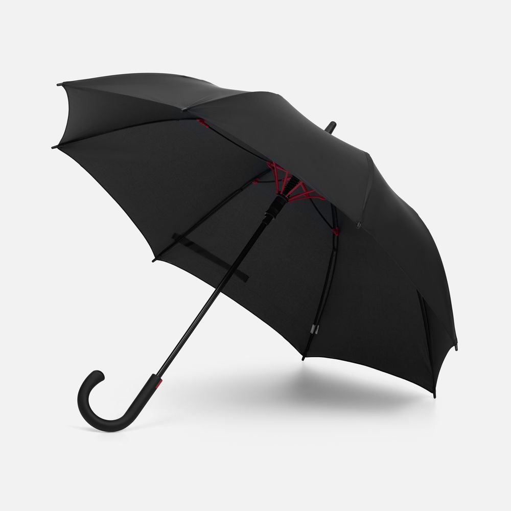 Легкий и невероятно прочный каркас из стеклопластика не боится порывов ветра. Сдержанный дизайн оживляет яркая деталь: цветные акценты на каркасе видны только при раскрытии зонта.